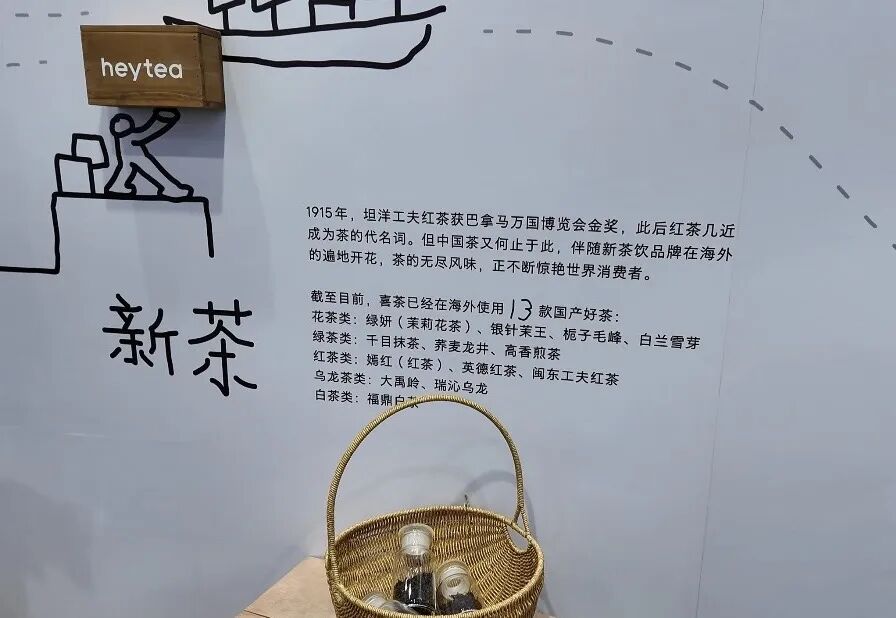 今年消博會(huì)上,喜茶展臺(tái)以手繪航線(xiàn)、中國(guó)帆船等元素致敬“海上茶路”,直觀(guān)呈現(xiàn)從茶葉到水果,“萬(wàn)物可入茶”的理念,并將海外限定產(chǎn)品“梔子1”帶來(lái)現(xiàn)場(chǎng)品鑒。這款喜茶在美國(guó)紐約時(shí)代廣場(chǎng)門(mén)店主推的純茶,以樂(lè)山梔子為茶底,用自研茶咖一體機(jī)萃取,借助技術(shù)手段實(shí)現(xiàn)產(chǎn)品出海風(fēng)味穩(wěn)定。