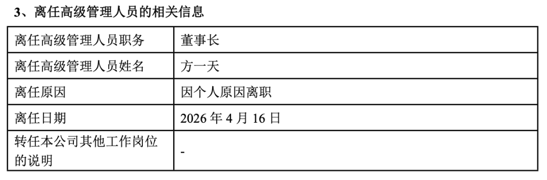 4月17日,萬家基金發(fā)布公告稱,董事長(zhǎng)方一天因個(gè)人原因正式離職。