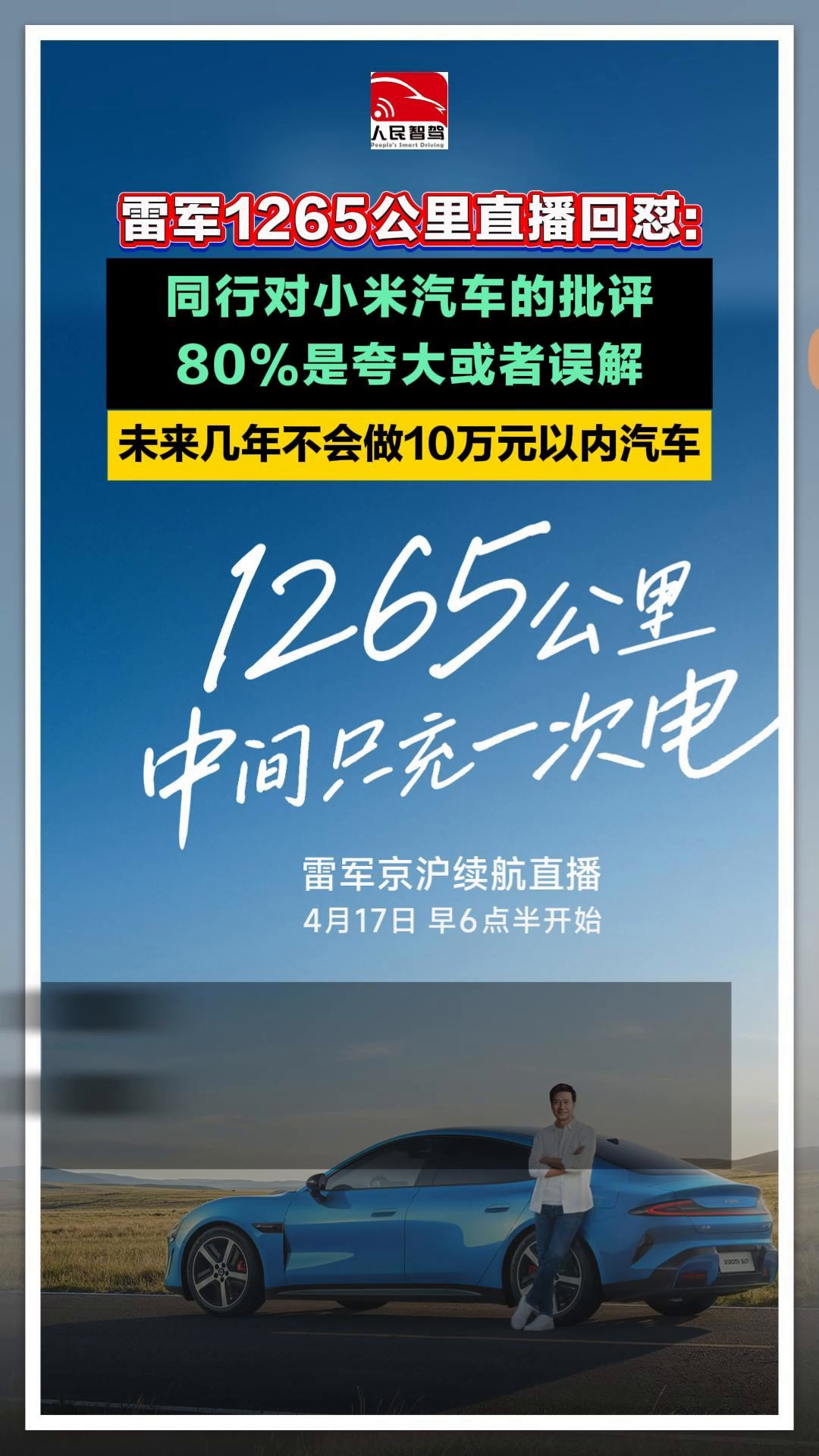 雷軍1265公里直播回懟: 同行對(duì)小米汽車(chē)的批評(píng),...
